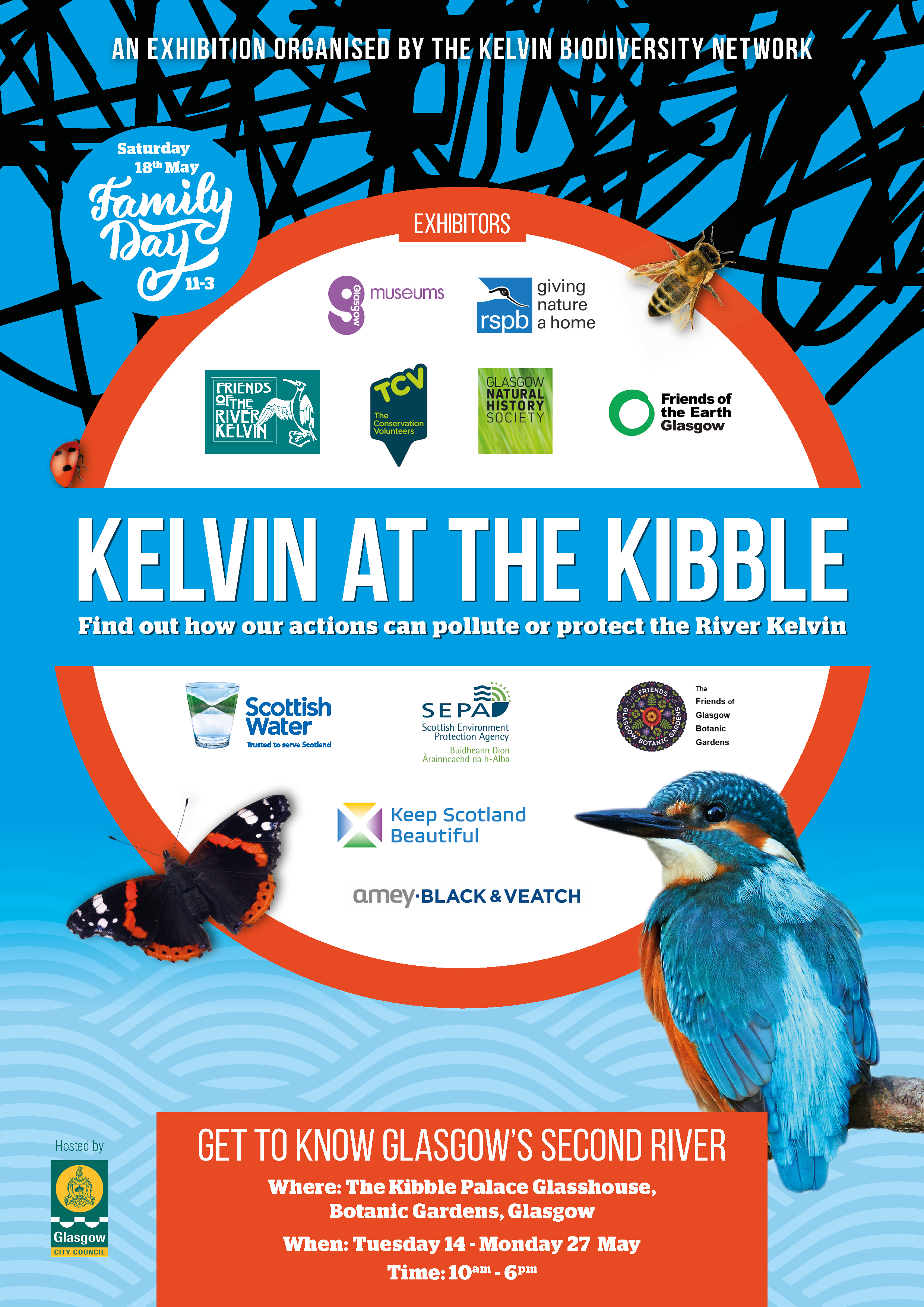 Glasgow Museums, RSPB, Friends of the River Kelvin, TCV, Glasgow Natural History Society, Friends of The Earth, Scottish Water (and their contractors on the Kelvin sewer upgrade ameyBlack & Veatch), Scottish Environmental Protection Agency, Keep Scotland Beautiful, and the Friends of Glasgow Botanic Gardens