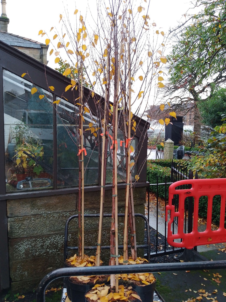 We also received five Chinese red birch trees on the 6th of November from R&B Tree Nursery, which were planted in the Arboretum (on the north side of Kirklee Bridge) by the volunteer group. Those birch trees are in memory of the late Dr John Corley Richards, at the University of Glasgow.
