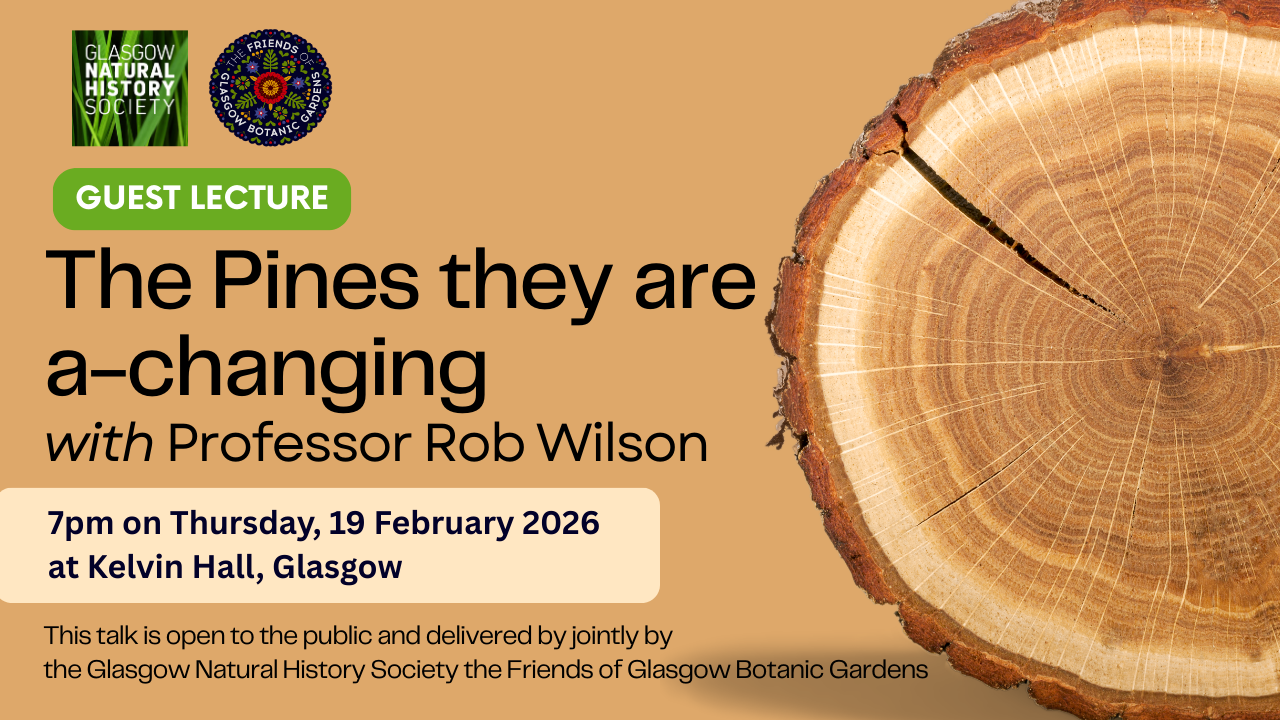 Join us at Kelvin Hall at 7pm on Thursday, 19 February 2026 for a guest lecture “The Pines they are a-changing” by Professor Rob Wilson of University of St Andrews.